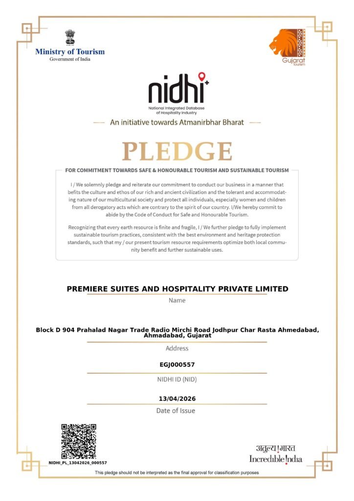 This recognition reflects our commitment to delivering reliable, transparent, and highquality hospitality services. Being part of this government recognized platform allows us to operate across India with enhanced credibility and customer confidence.